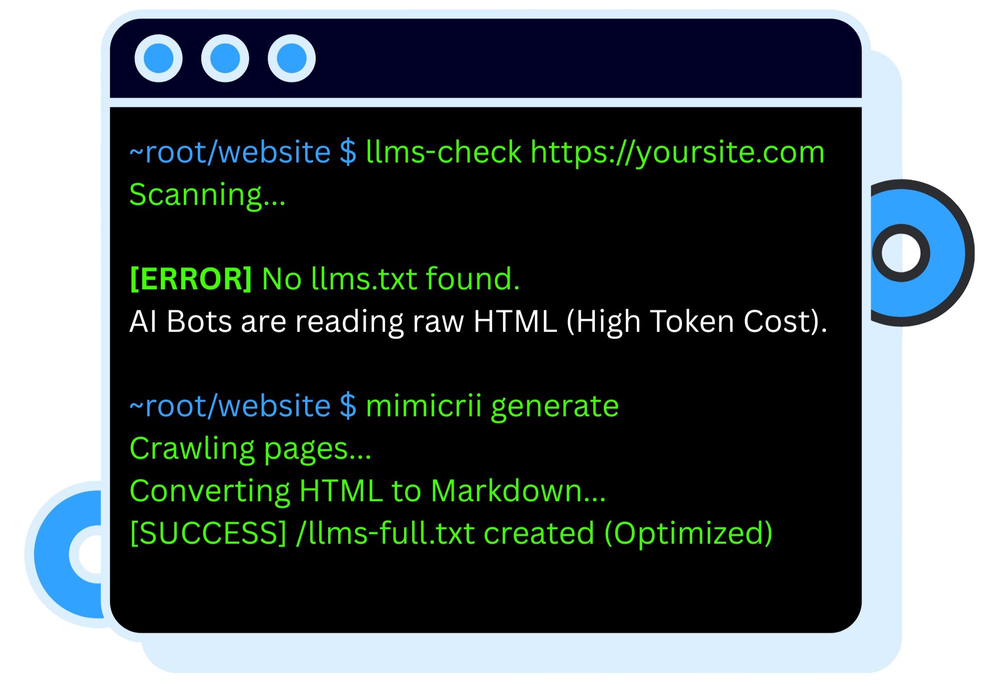 We custom handcraft or convert your HTML to precise LLMs.txt files—clean Markdown that ChatGPT, Claude, Grok, Miko, and Perplexity read noise-free.