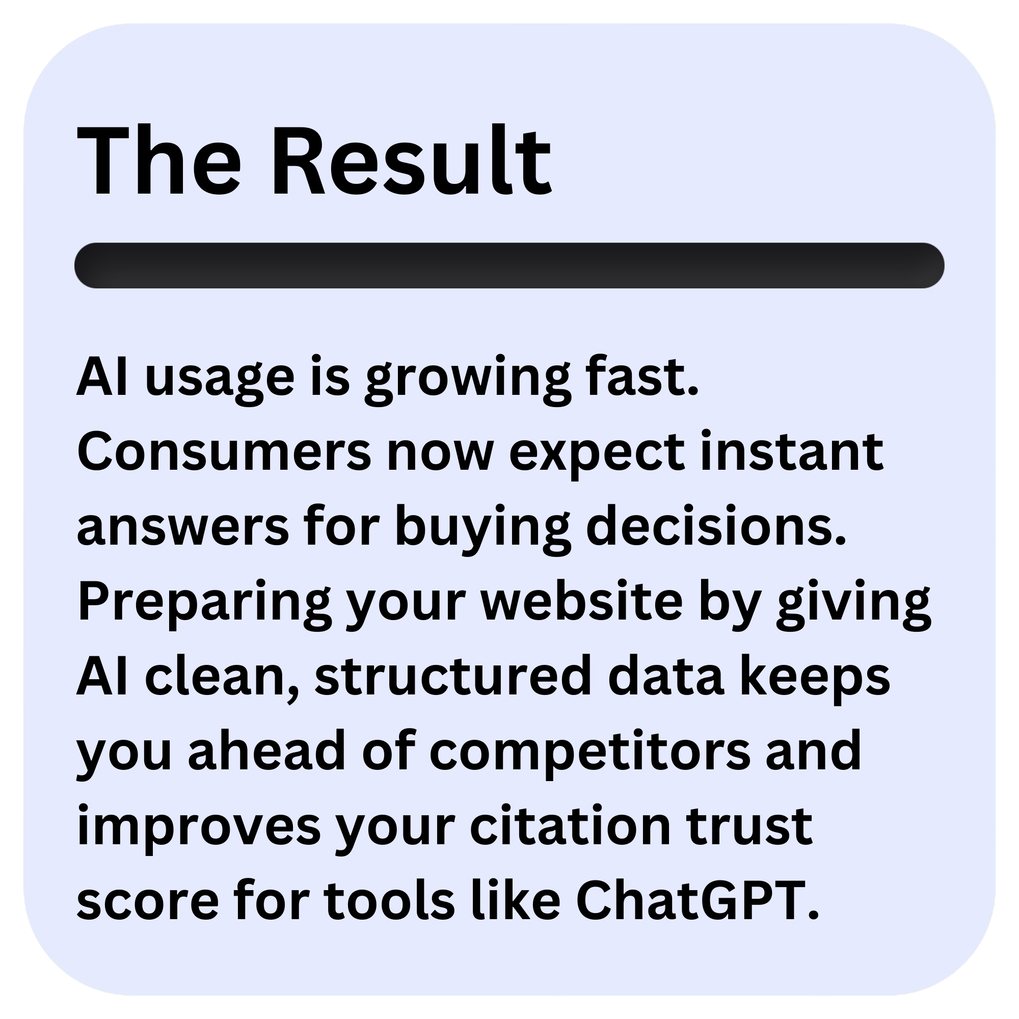 More people are using AI tools to research, compare, and decide what to buy. If your brand is easy for AI to read, you increase your chances of being discovered at the moment buyers are looking.
