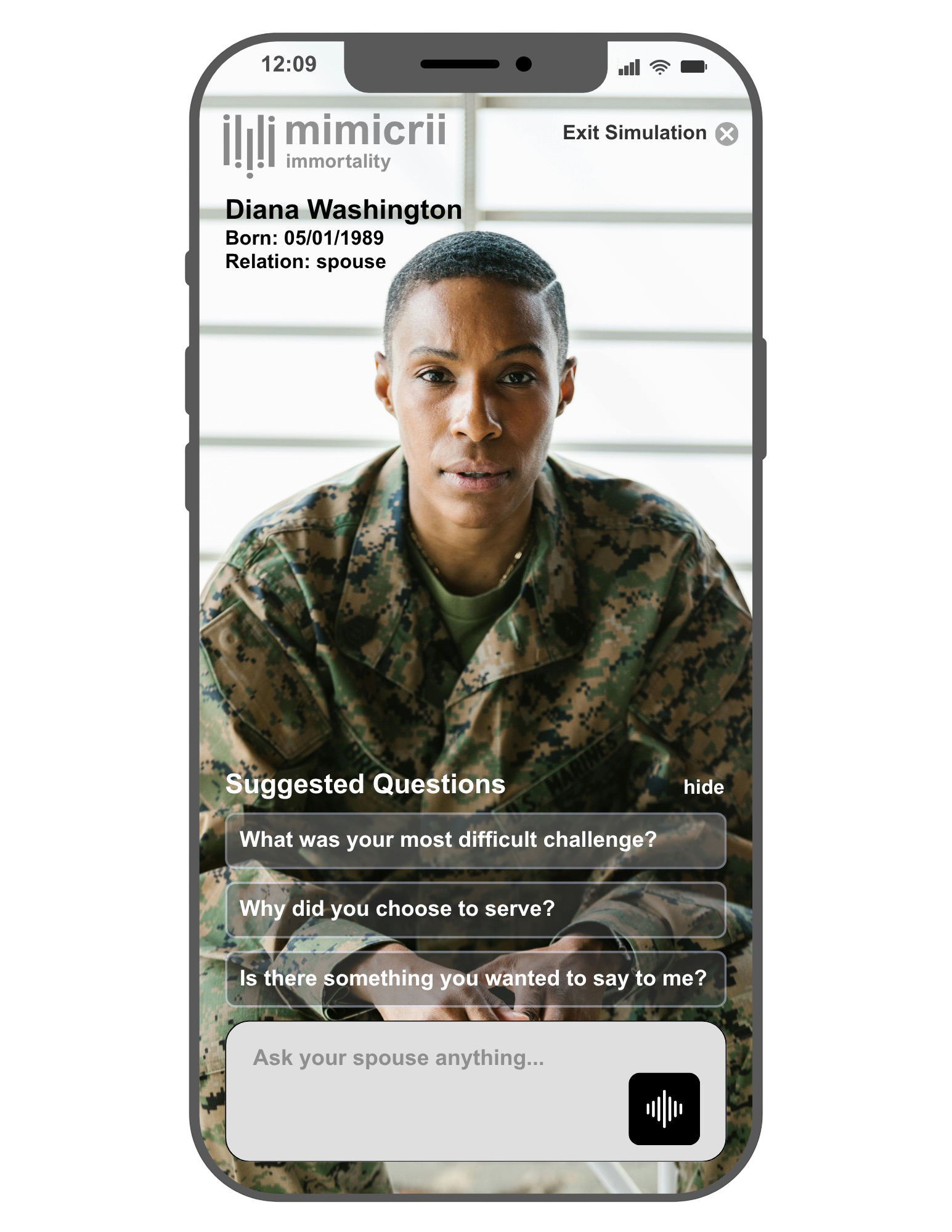 Some messages need to be shared at the right place and the right time. Sometimes we may not be there to say it. With Mimicrii Immortality, you can store answers for your family that can only be shared when the recipient asks the right question or if you pre-configure a message be delivered at a specific time in the future after your celebration of life.